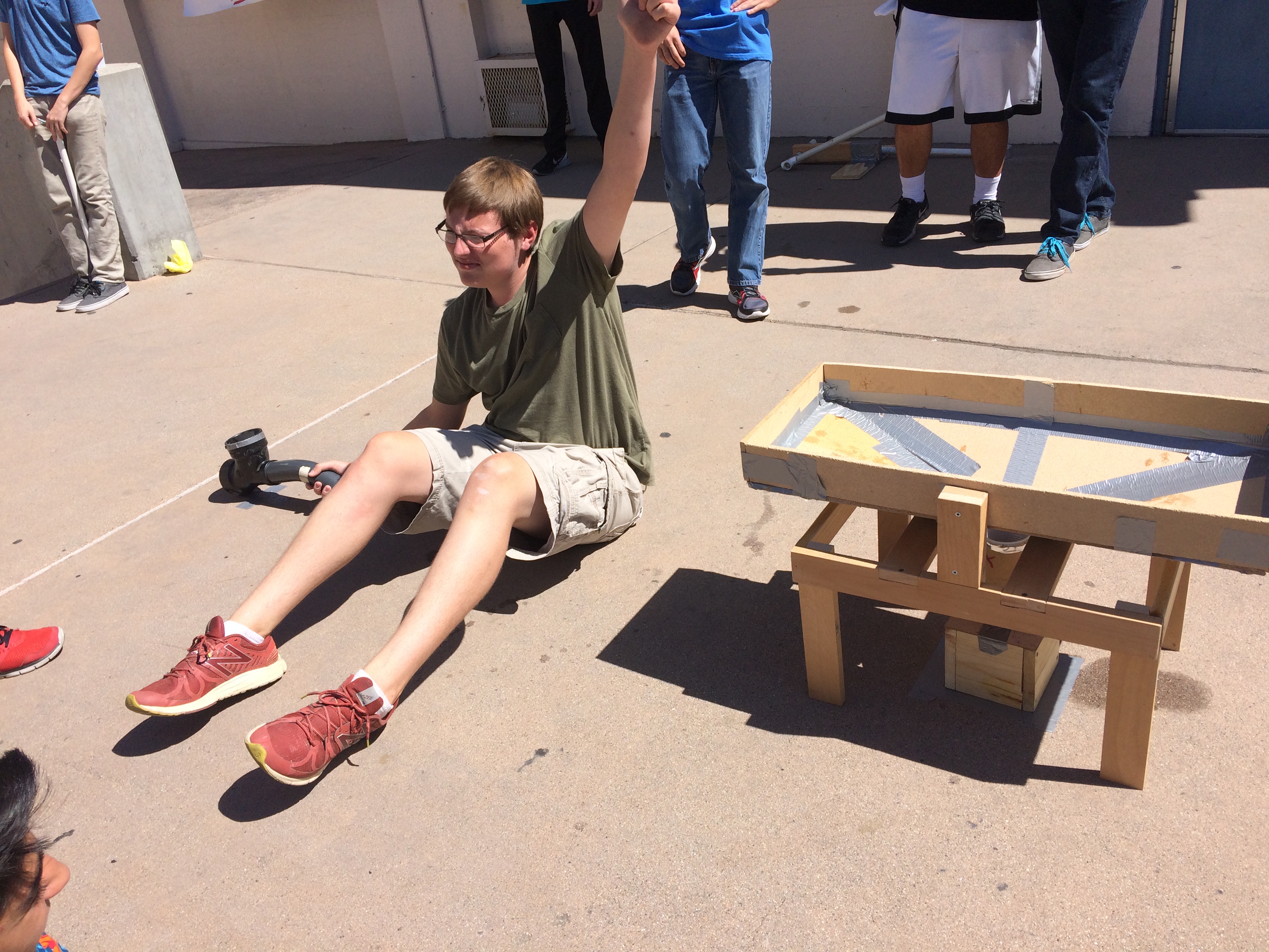 In other news, we were told that the final would be the JPL Invention Challenge. So if we can match or beat Kevin's teams score of 18ish seconds, we would get an A. This gives us another chance to fix our device. WOOHOOO!