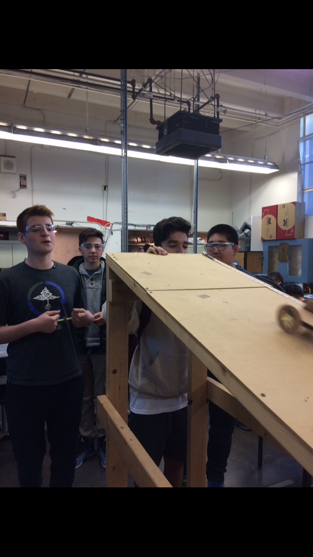Happy Thursday everyone. At the beginning of class today, the groups finished presenting ideas for the handout. I have a sinking feeling that our idea will not be chosen, but we shall wait and see. Today is also the big test for the cardboard cars! Im a spotter(someone who catches the cars when/if they run off the ramps and measures how far the cars went) along with Keilah. So far, no car has made it all the way down, but we will be testing more tomorrow since we ran out of time. I noticed people were still working on their cars today in class, so I hope the glue dries in time for testing tomorrow.