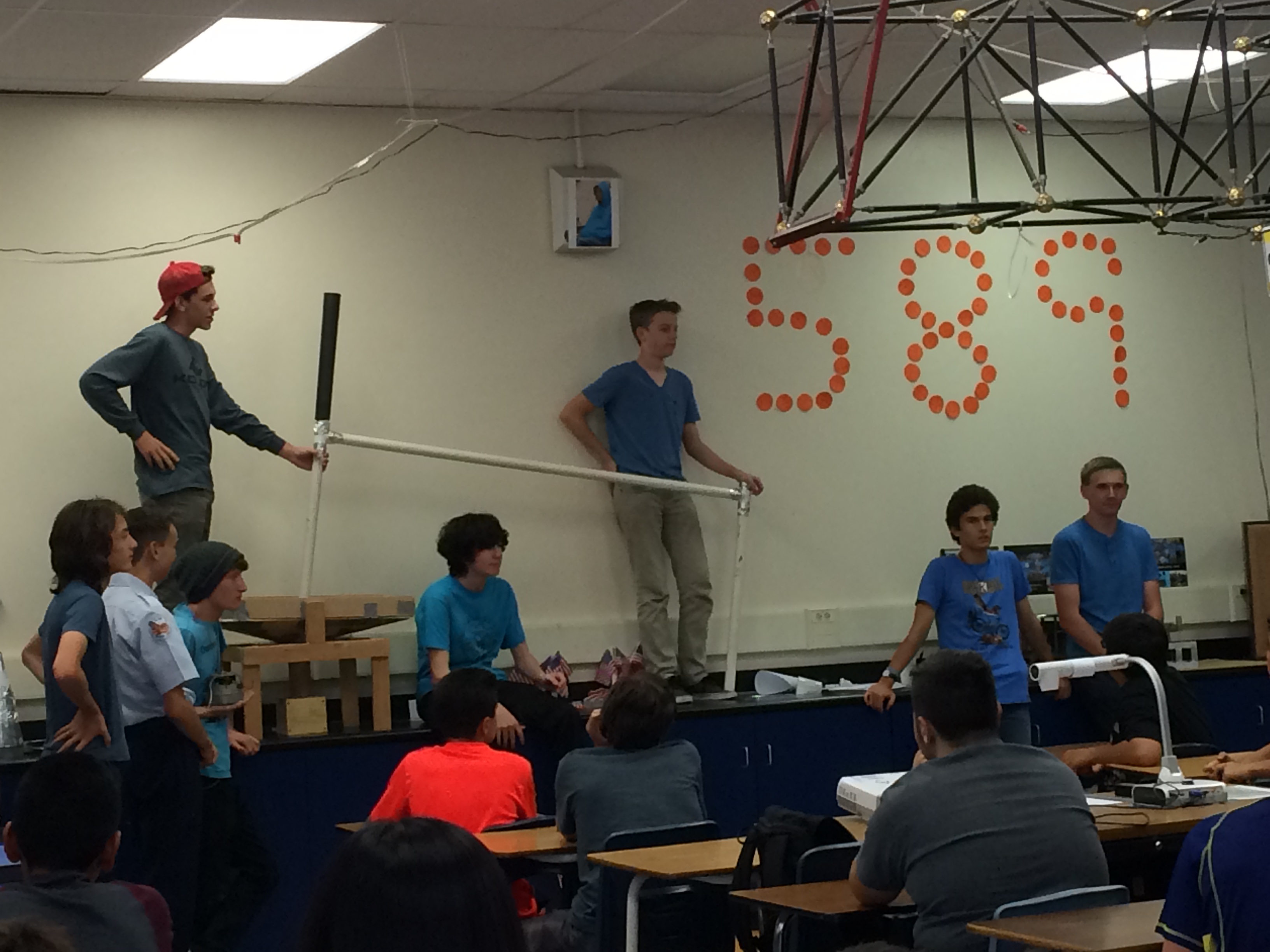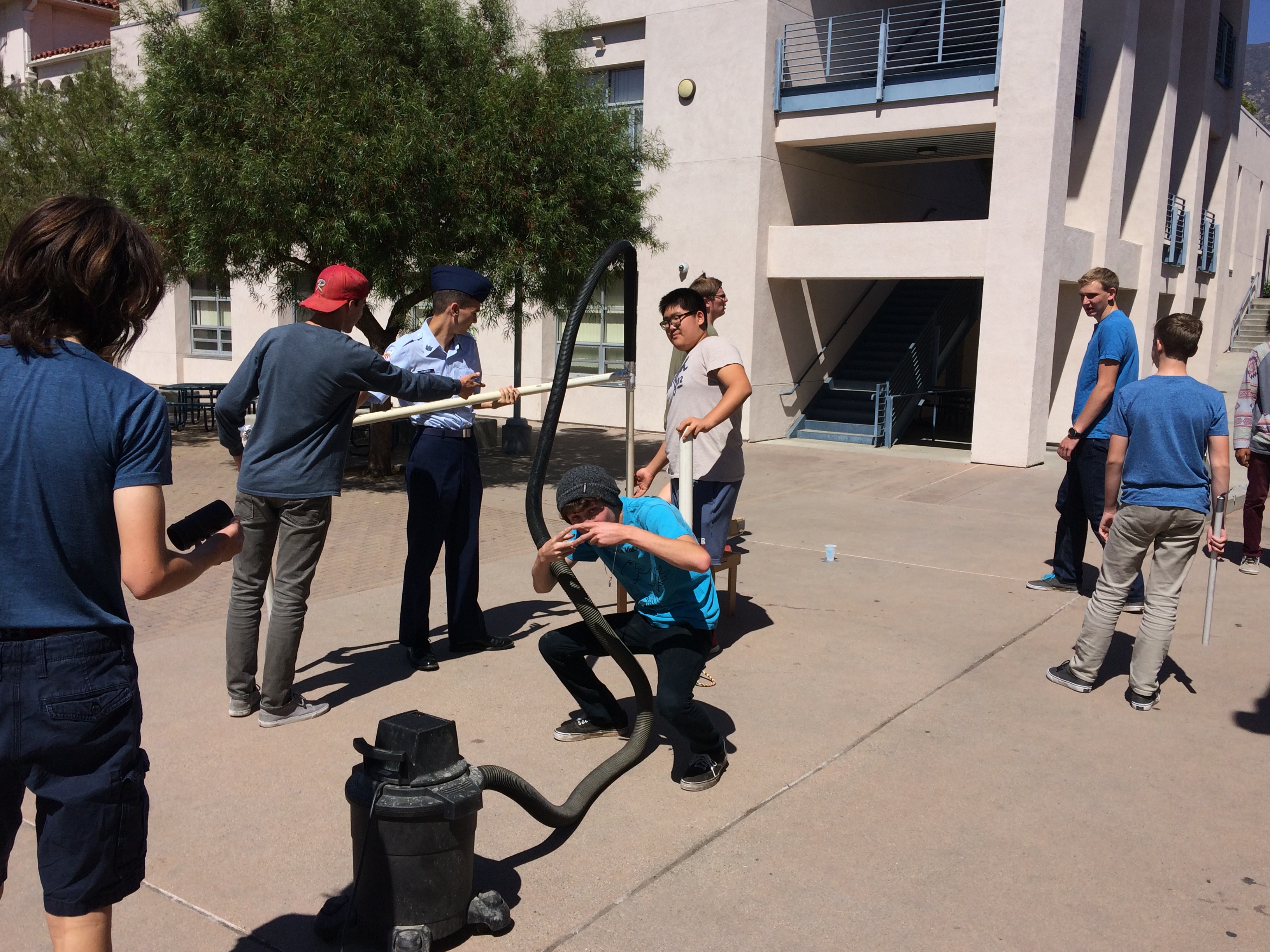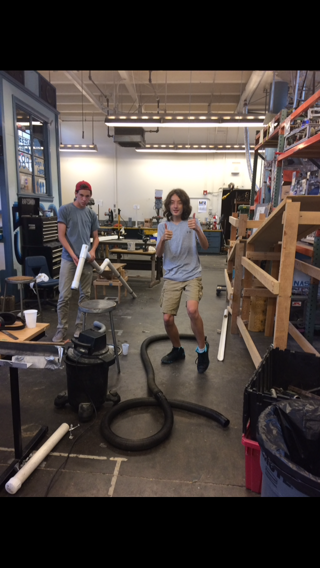 and Alvin intends to build the reception point this evening for class tomorrow. Today the vets split off to work on the JPL invention challenge again. Hunter and Jacob started testing a vaccum, Sam kept working on sketchup for his design.