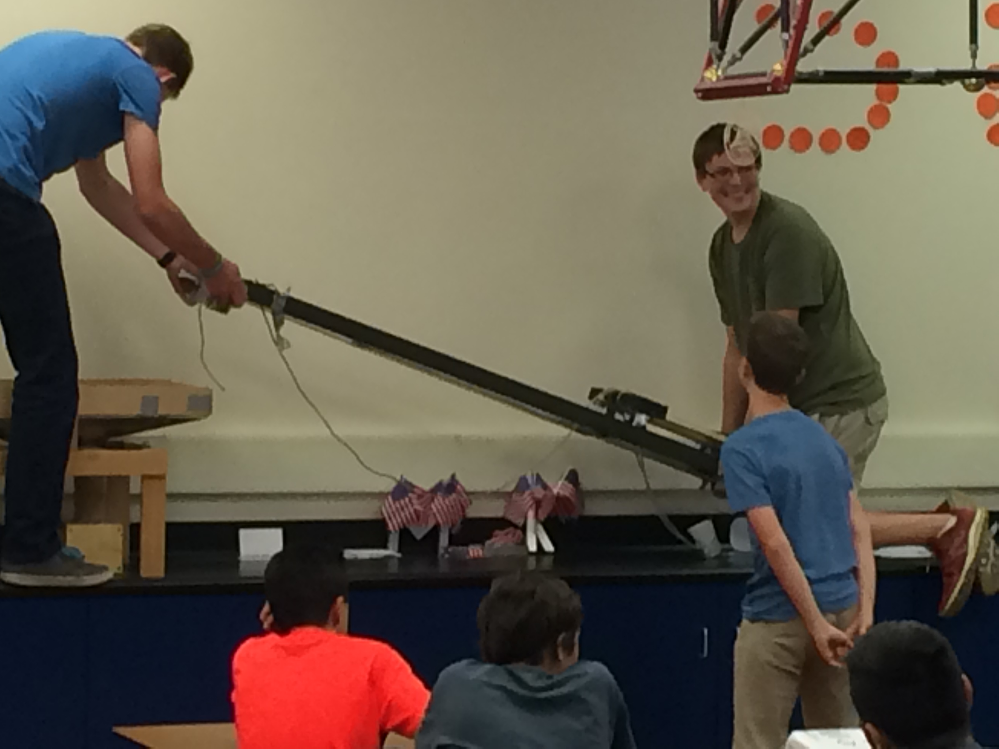 Today we are presenting to the class. The JPL Crew went up to go over how the competition went. None of us won, but we tried really hard. Cole and Sam's device malfunctioned during their turn. One rope got wrapped around the part that moved the cup across the track and stopped it from reaching the reception point. Jacob and hunter's device sucked up the fish buit it ended up getting stuck. He mentioned how he would have made the chamber of the vaccume more circular so it would have had more suction the the square one he had.